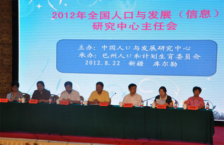 2012年8月22-24日,中国人口与发展研究中心在新疆巴州举办“2012年全国人口与发展研究(信息)中心主任会暨人口信息化与宏观决策支持培训班”。